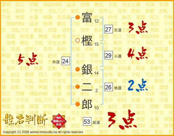 富樫銀二郎さんの総運は53画の3点!