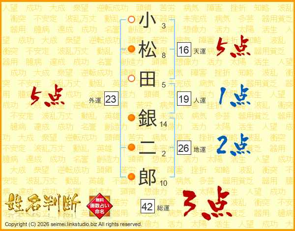 小松田銀二郎さんの地運は26画の2点!