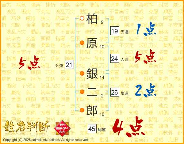 柏原銀二郎さんの総運は45画の4点!