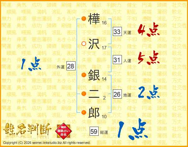 樺沢銀二郎さんの総運は59画の1点!