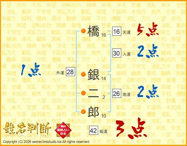 橋銀二郎さんの天運は16画の5点!