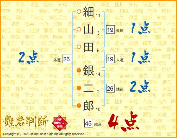 細山田銀二郎さんの総運は45画の4点!