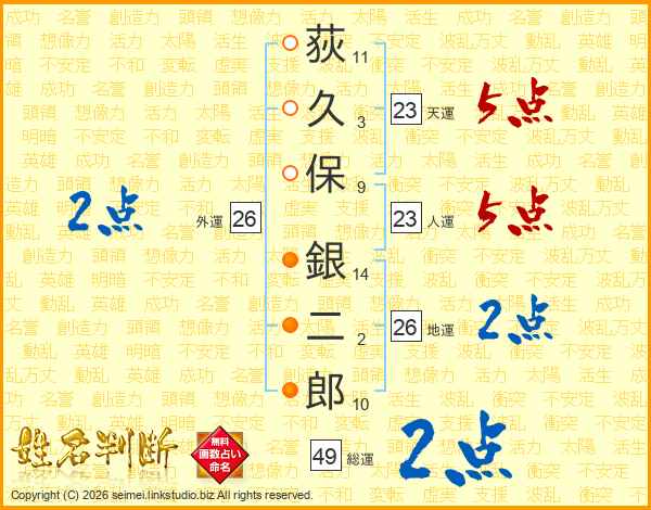 荻久保銀二郎さんの人運は23画の5点!
