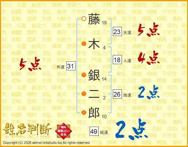 藤木銀二郎さんの天運は23画の5点!
