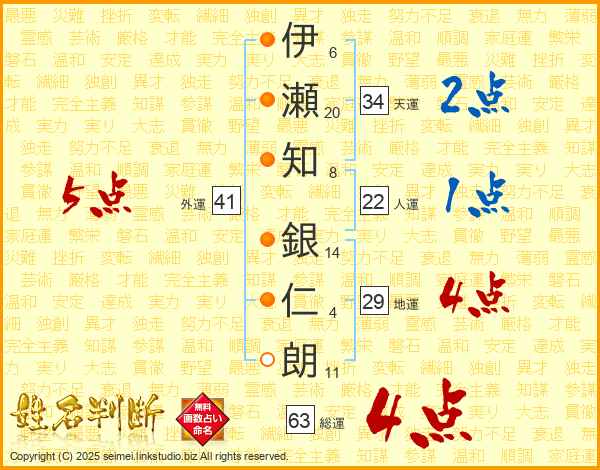 伊瀬知銀仁朗さんの総運は63画の4点!