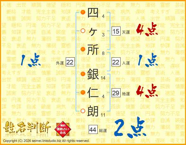 四ヶ所銀仁朗さんの総運は44画の2点!