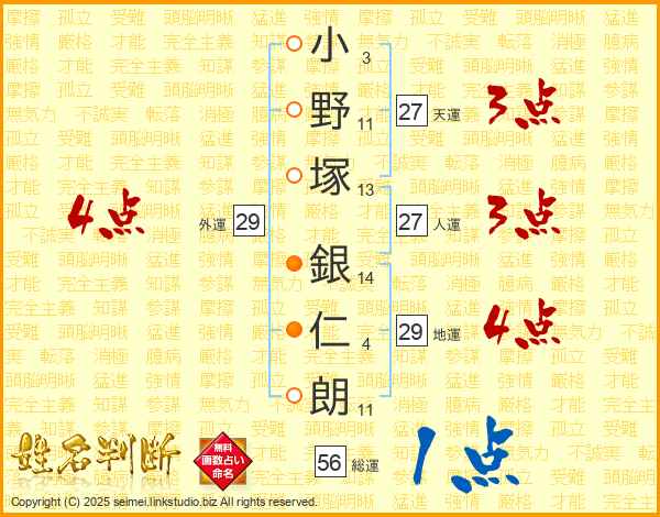 小野塚銀仁朗さんの総運は56画の1点!