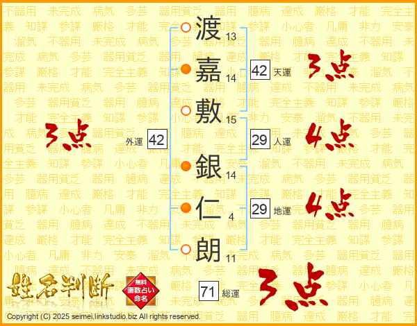 渡嘉敷銀仁朗さんの人運は29画の4点!
