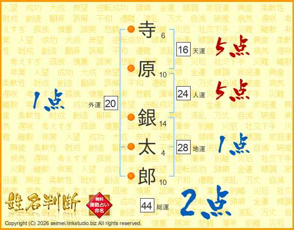 寺原銀太郎さんの総運は44画の2点!