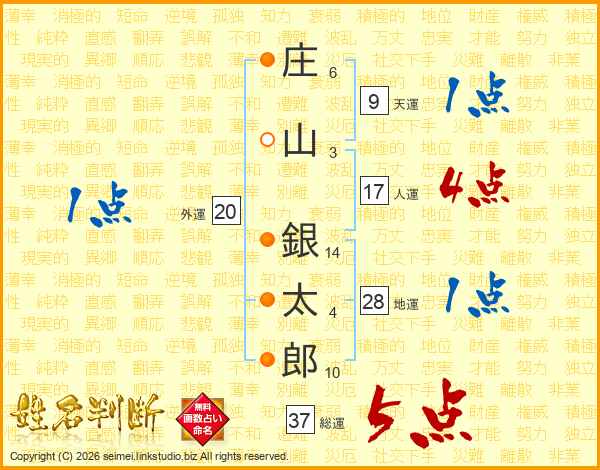 庄山銀太郎さんの総運は37画の5点!