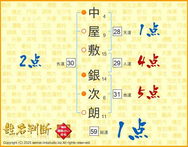 中屋敷銀次朗さんの地運は31画の5点!