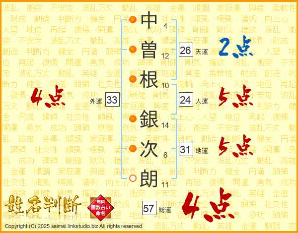 中曽根銀次朗さんの総運は57画の4点!