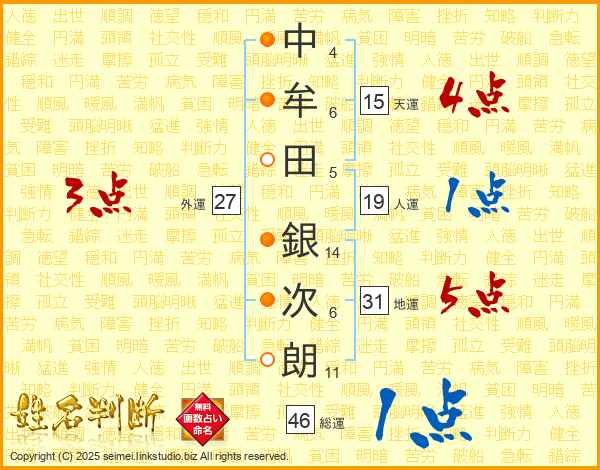 中牟田銀次朗さんの地運は31画の5点!