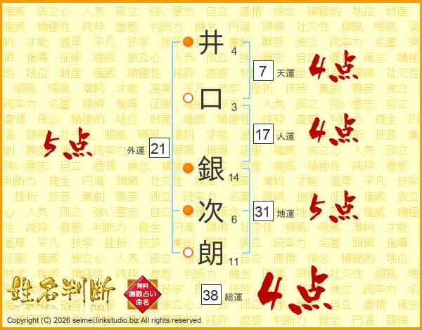 井口銀次朗さんの総運は38画の4点!