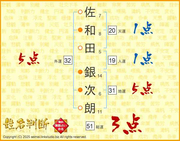 佐和田銀次朗さんの地運は31画の5点!