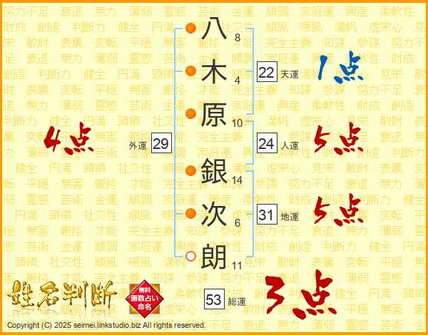 八(8画)木(4画)原(10画) 銀(14画)次(6画)朗(11画)