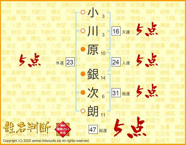 小川原銀次朗さんの総運は47画の5点!
