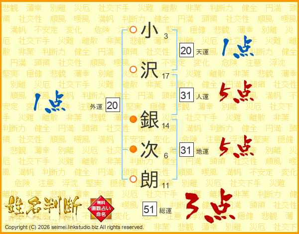小沢銀次朗さんの地運は31画の5点!