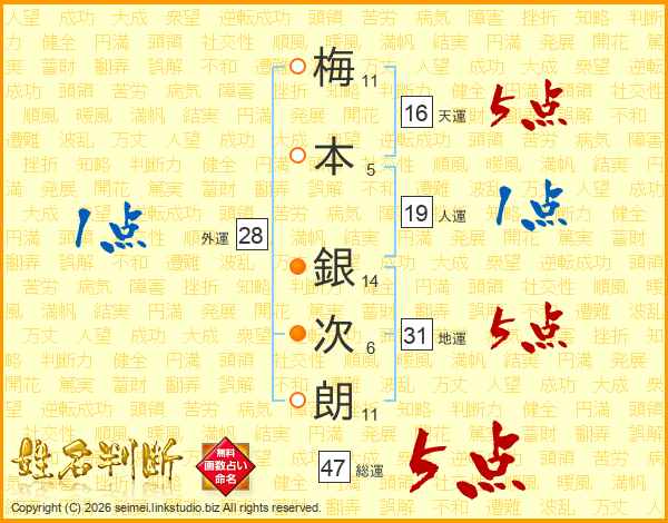 梅本銀次朗さんの総運は47画の5点!