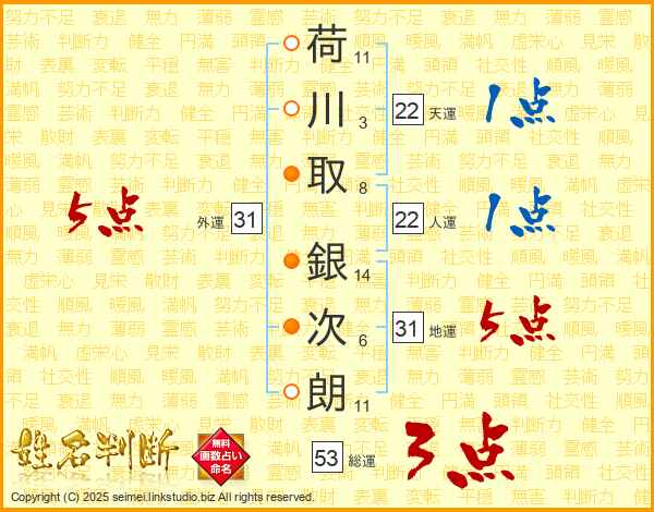 荷川取銀次朗さんの天運は22画の1点!