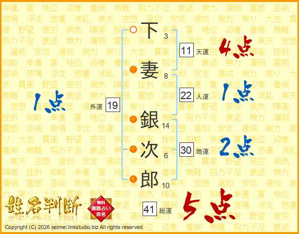 下妻銀次郎さんの天運は11画の4点!