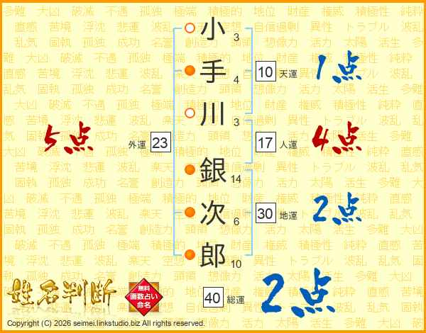 小手川銀次郎さんの総運は40画の2点!