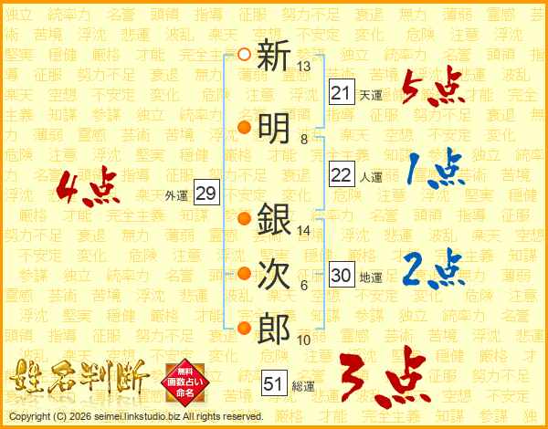 新明銀次郎さんの天運は21画の5点!