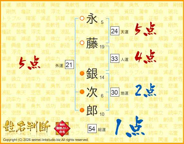 永藤銀次郎さんの総運は54画の1点!