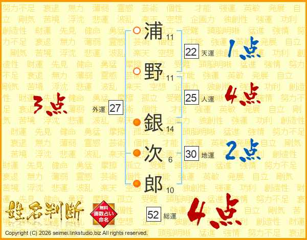 浦(11画)野(11画) 銀(14画)次(6画)郎(10画)