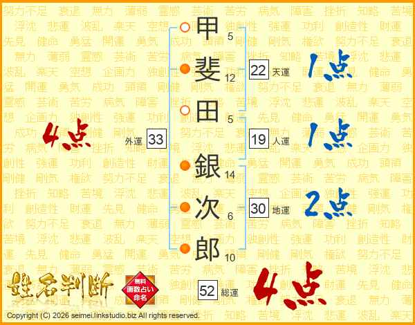 甲斐田銀次郎さんの総運は52画の4点!