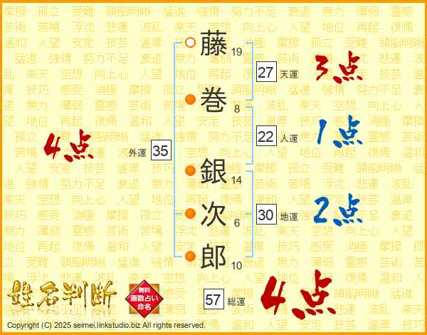 藤巻銀次郎さんの総運は57画の4点!