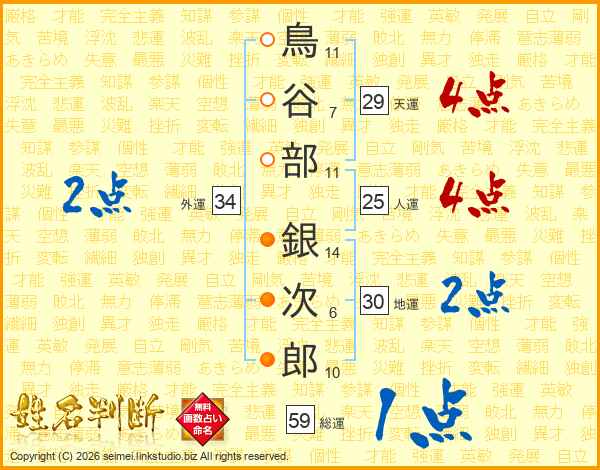 鳥谷部銀次郎さんの天運は29画の4点!