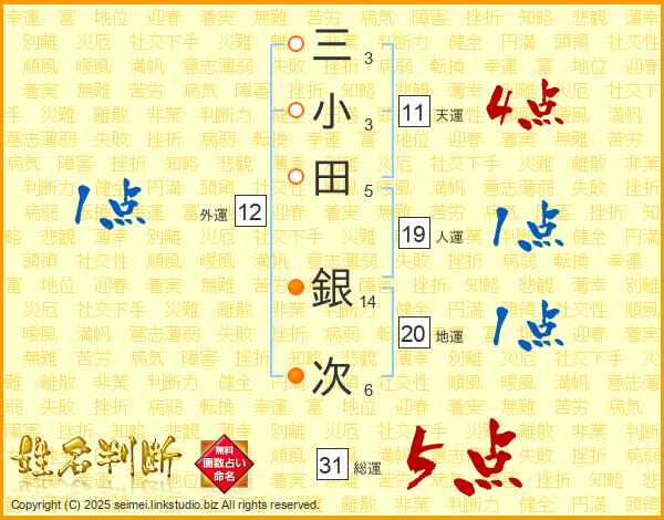 三(3画)小(3画)田(5画) 銀(14画)次(6画)