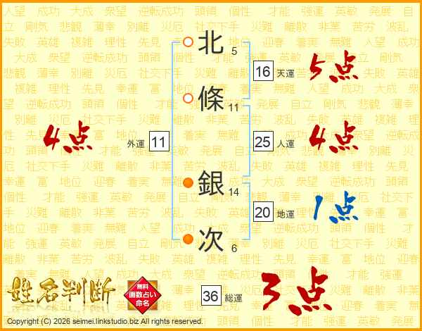 北條銀次さんの総運は36画の3点!