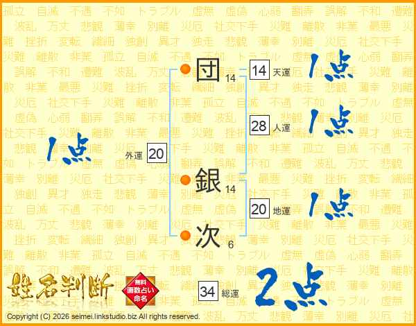 団銀次さんの天運は14画の1点!