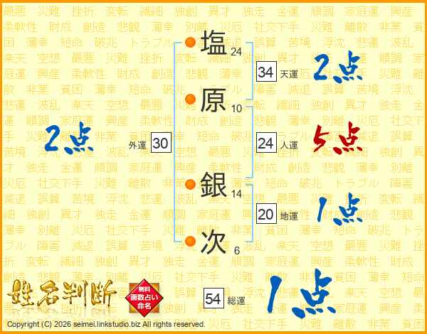 塩原銀次さんの人運は24画の5点!