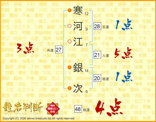 寒(12画)河(9画)江(7画) 銀(14画)次(6画)