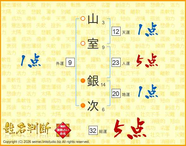 山室銀次さんの総運は32画の5点!