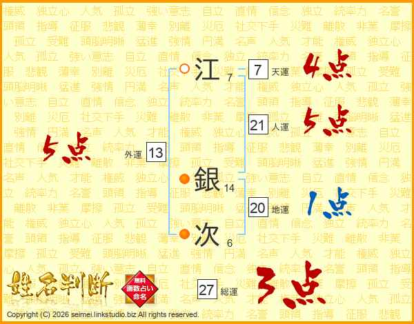 江銀次さんの総運は27画の3点!