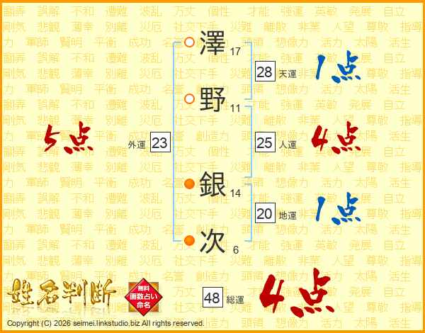 澤野銀次さんの総運は48画の4点!