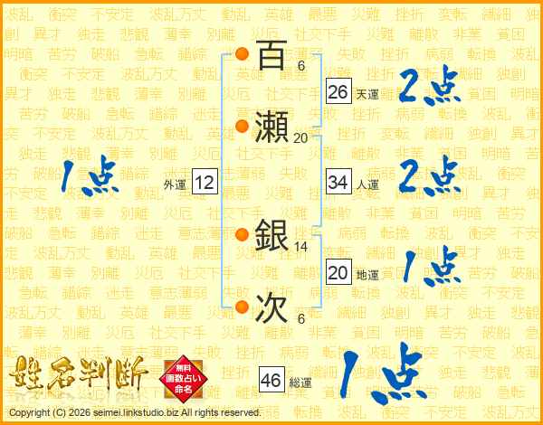 百瀬銀次さんの天運は26画の2点!