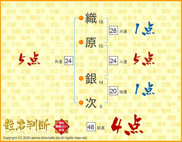 織原銀次さんの人運は24画の5点!