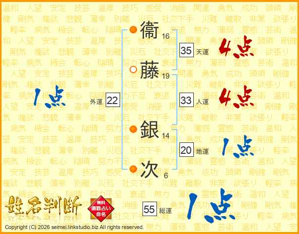 衞藤銀次さんの人運は33画の4点!