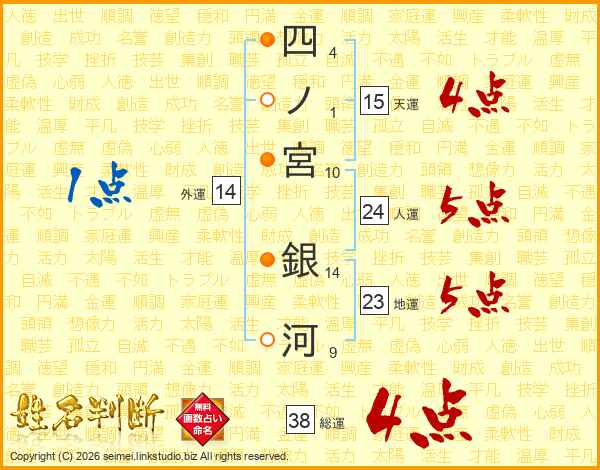 四ノ宮銀河さんの総運は38画の4点!