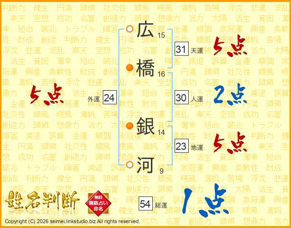 広橋銀河さんの総運は54画の1点!