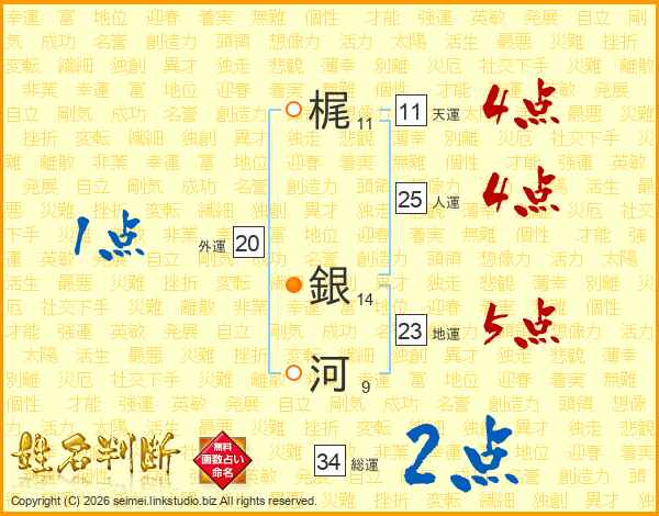 梶銀河さんの天運は11画の4点!