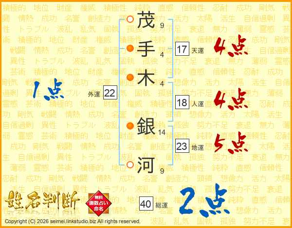 茂手木銀河さんの総運は40画の2点!