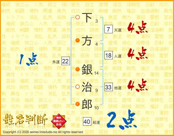 下方銀治郎さんの総運は40画の2点!