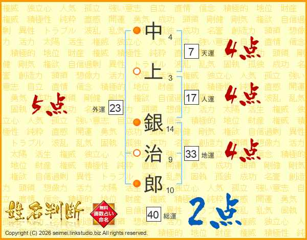 中上銀治郎さんの総運は40画の2点!