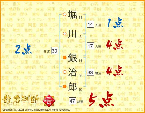 堀川銀治郎さんの総運は47画の5点!